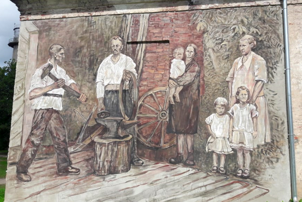 На картине в Малнаве изображена старая местная кузница с семьей кузнеца.