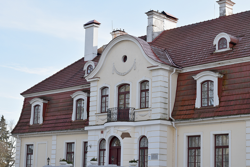 От имения сохранился не только непосредственно господский дом. В бывшей здании конюшен разместилась местная библиотека, а бывшем доме для прислуги - муниципальное самоуправление. Усадебный проект разрабатывал архитектор из Даугавпилса (тогда Динабурга) В. Нейман. Он создал практичный, красивый и оригинальный ансамбль с элементами классицизма и барокко. Сам заказчик, Михаил Плятер-Зиберг был человеком очень деятельным и в построенном по его инициативе имении появлялся редко.