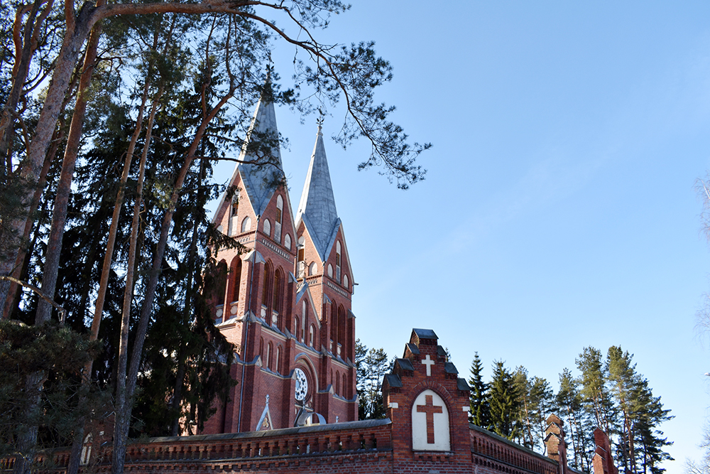 В церковном саду есть могила епископа Казимира Дульбинского. А в южной стороне сада церкви стоит фамильный склеп Мариенгаузенских графов Липпе-Липских.