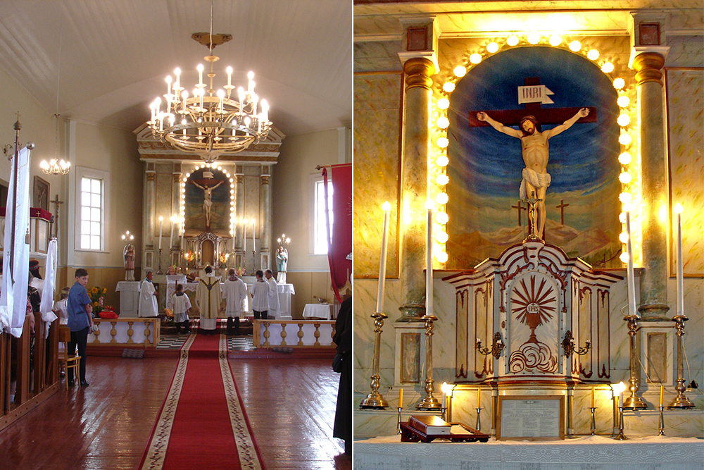 В западной части, у главного входа в церковь, в углах каменной ограды были воздвигнуты две небольшие часовни с колоколенками. Окончательно нынешний облик храма оформился к 1929 году, когда башни были основательно перестроены. Регулярно обновлялась и внутренняя отделка, включая три алтаря и орган. В Стигловской церкви хранятся несколько значимых произведений религиозного искусства XVIII-XIX веков: образы Богоматери Кармельской и Св. Антония, а также расписанная дарохранительница.
