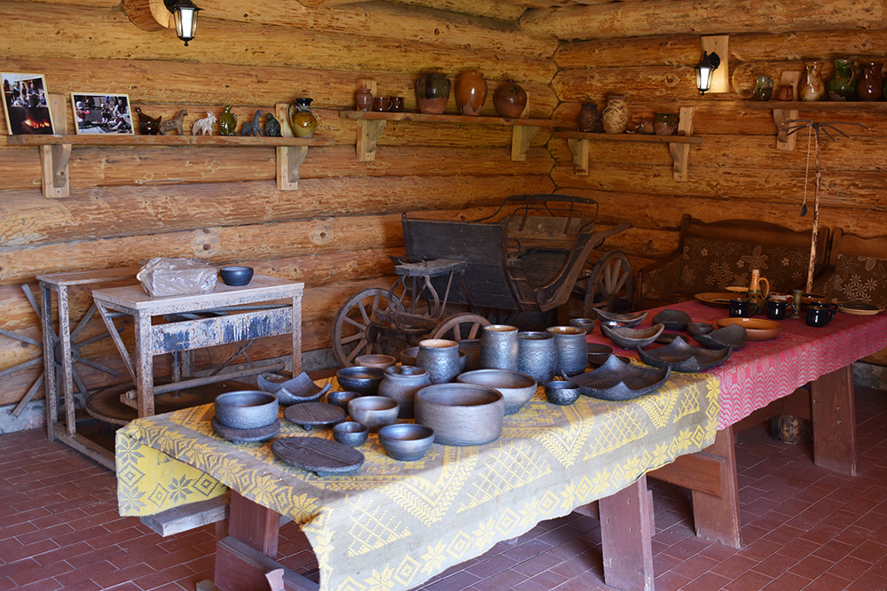 В нем воспроизведена латгальская деревня начала XX века: деревенский дом, амбар, черная баня, кузница и гончарная мастерская. Все строения – не новодел, они свезены из разных окрестных населенных пунктов. На крышах старая дранка или камыш, в домах и мастерских старинная мебель, сундуки, аутентичная утварь и инструменты.