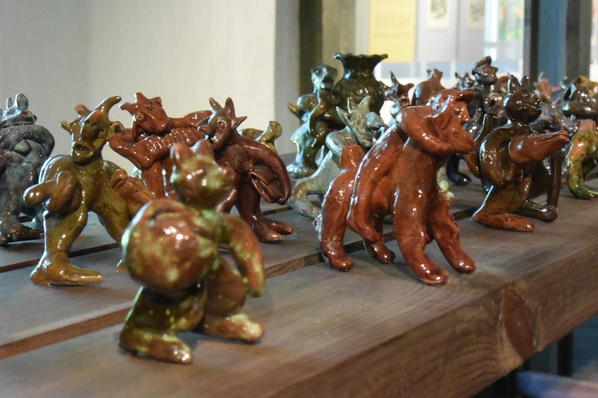 Здесь выставлены традиционные кувшины со свистульками (чтобы звать "человека", когда горячительное закончится) работы Пауланса (Andrejs Paulāns). Кувшины с портретами, сделанные Адамсом Капуостиньшем (Ādams Kāpostiņš) и его же работы потрясающая керамическая облицовка печи. Разные керамические предметы хозяйственного назначения, например, сдвоенные горшки, в которых носили обед полевым рабочим. А также очень симпатичная коллекция глиняных чертиков, сделанных Антоном Шмуланом (Antons Šmulāns).
