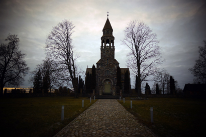 На окраине Вишек возвышается храм Иоанна Крестителя, сложенный из обтесанных валунов, по форме скорее напоминающий кирху, а в сумерках так и вовсе похожий на сказочный замок.